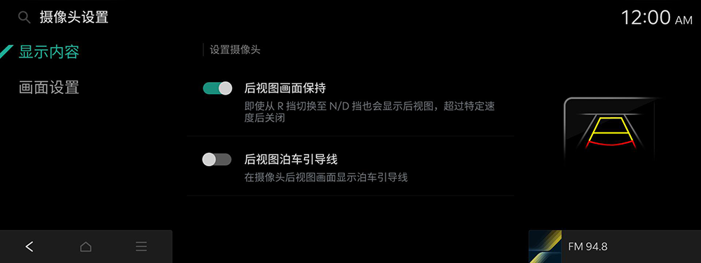配置停车辅助影像的界面设置并设置要在视图中显示的信息。