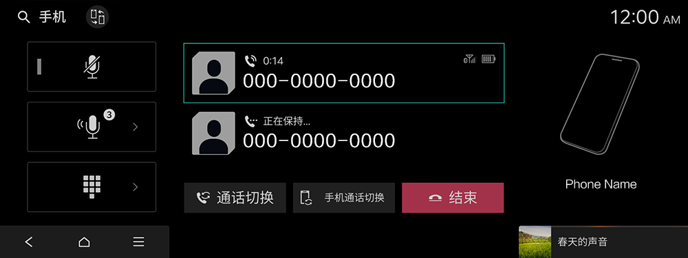 连接支持呼叫等待的手机并使用时,通话期间可接听新的来电。现有通话将切换为等待状态。