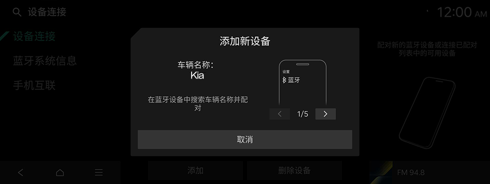 - 请在全部菜单界面上,点击设置 ▶ 设备连接 ▶ 设备连接 ▶ 添加。