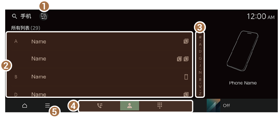 下载手机上保存的联系人, 您可以通过从系统界面中选择联系人来拨打电话。