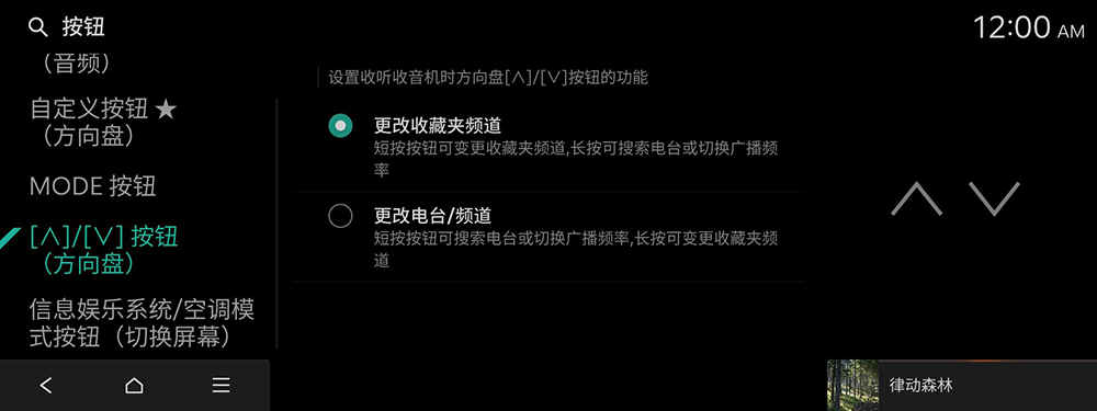 可将方向盘上的∧/∨] 按钮设置成在收听收音机时可以使用的某个功能。