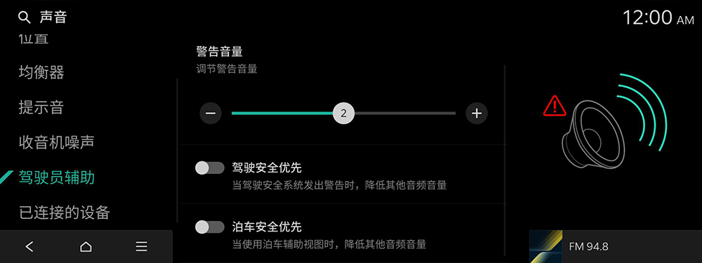 可以设置当驾驶安全系统发出警告时,降低其他音频音量。