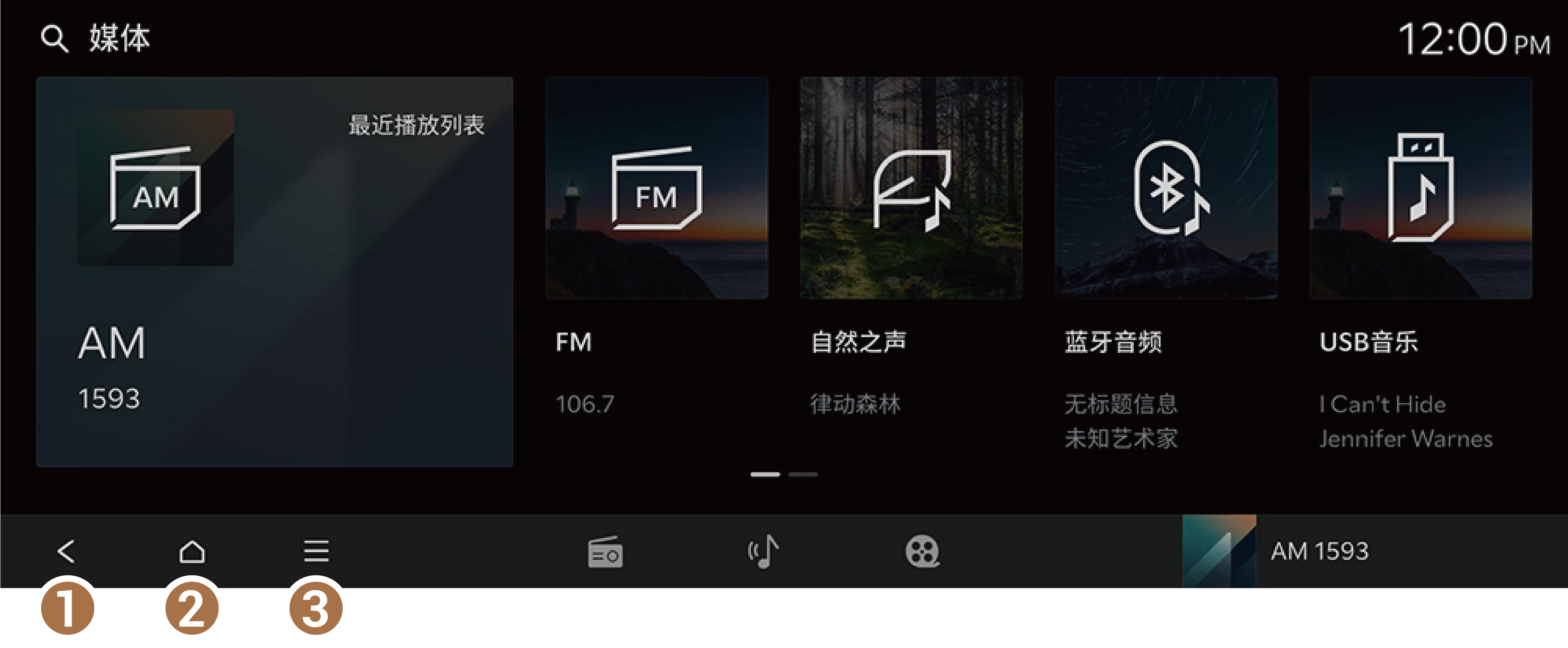 主页是信息娱乐系统提供的基本界面,显示当前时间和其他基本信息。