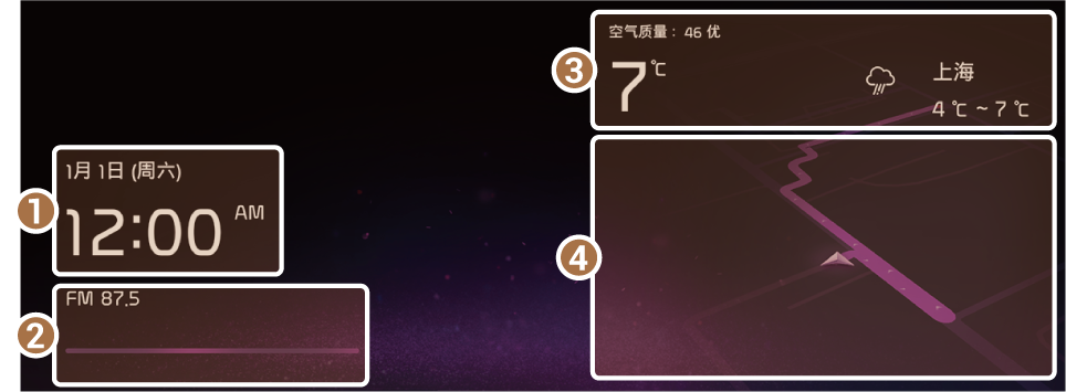 显示收音机/媒体信息,点击可跳转到对应页面。
