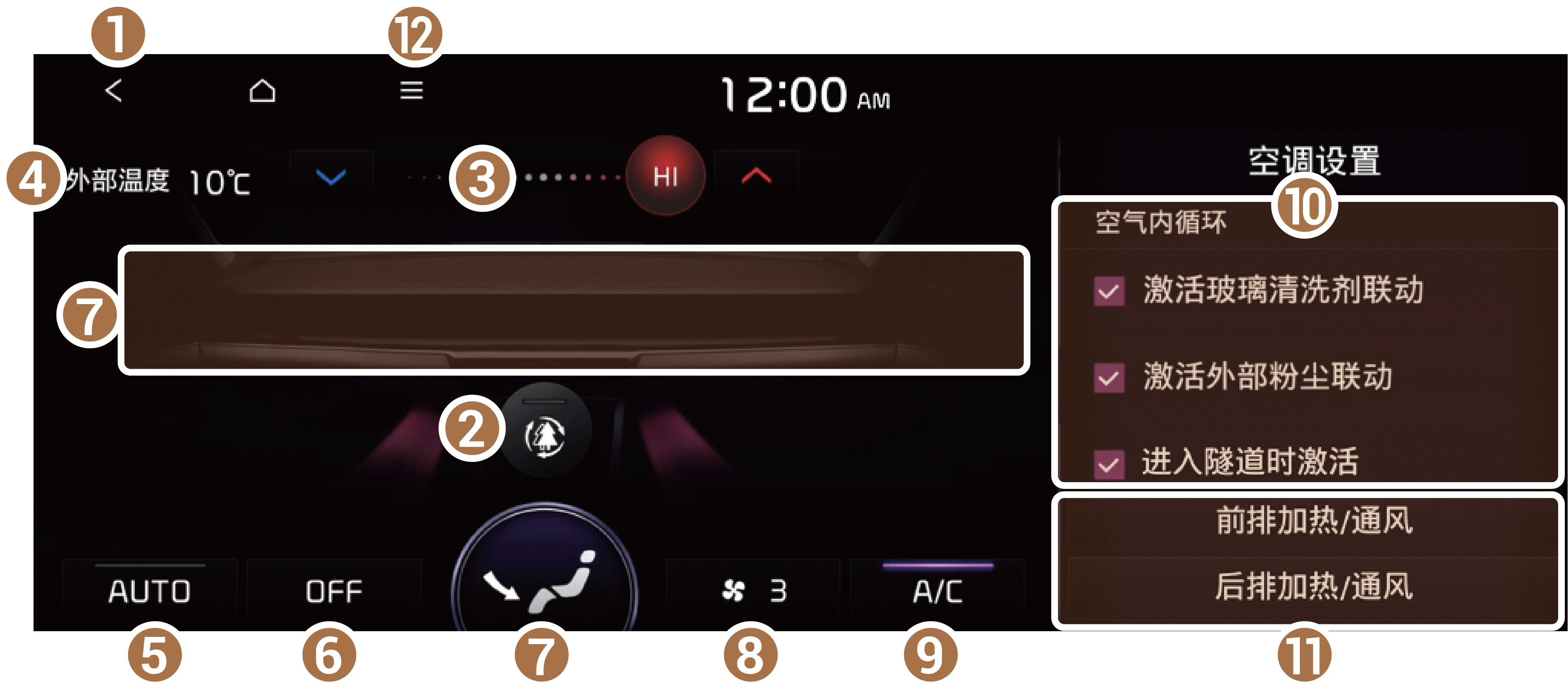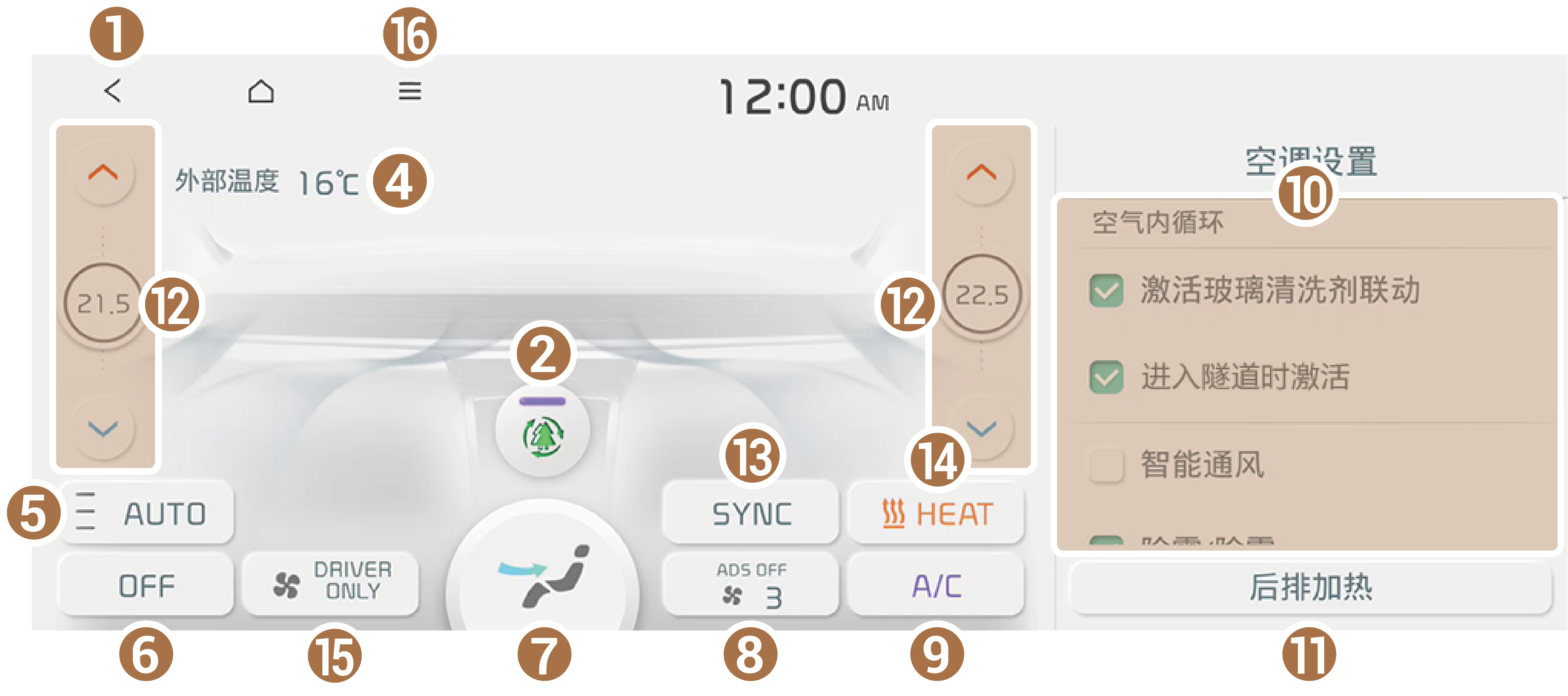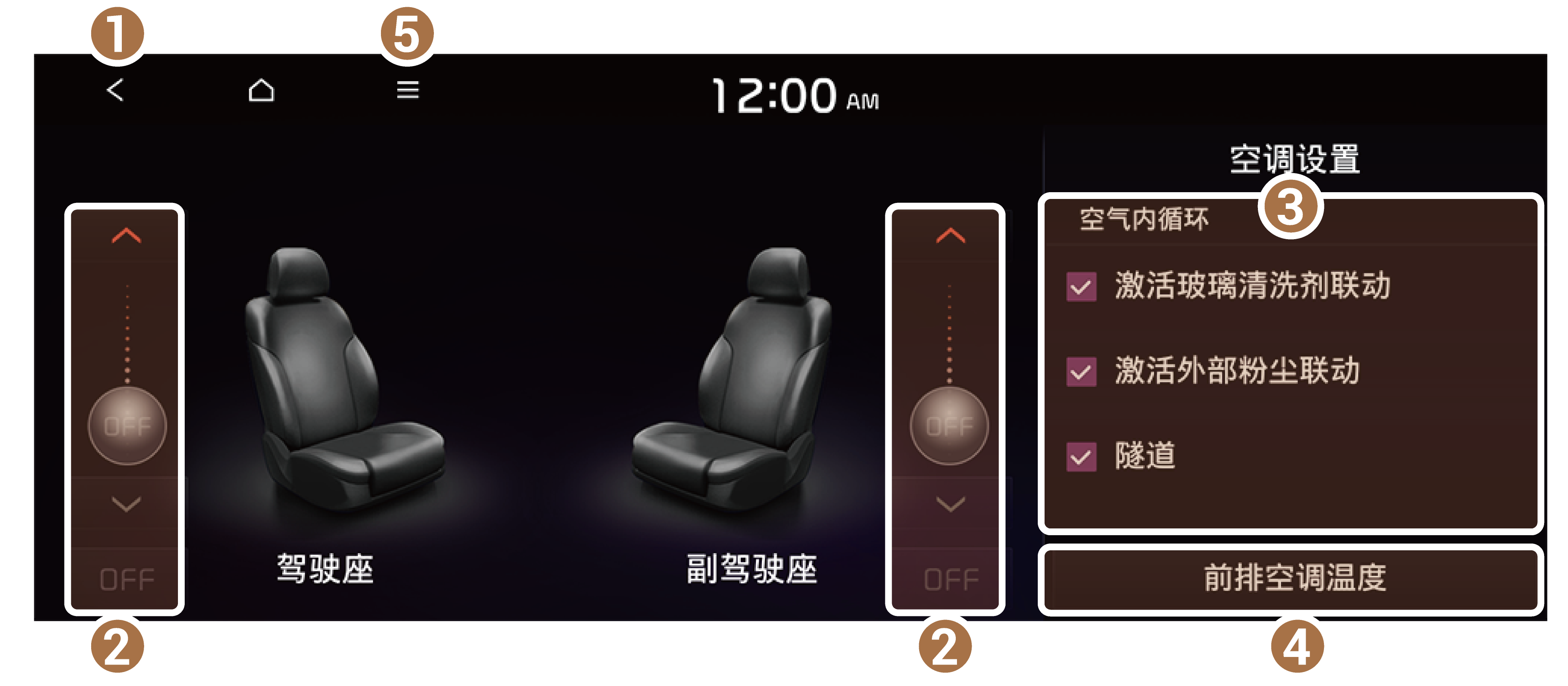 您可以调整座椅加热/通风设置,使您的驾驶环境更加舒适。