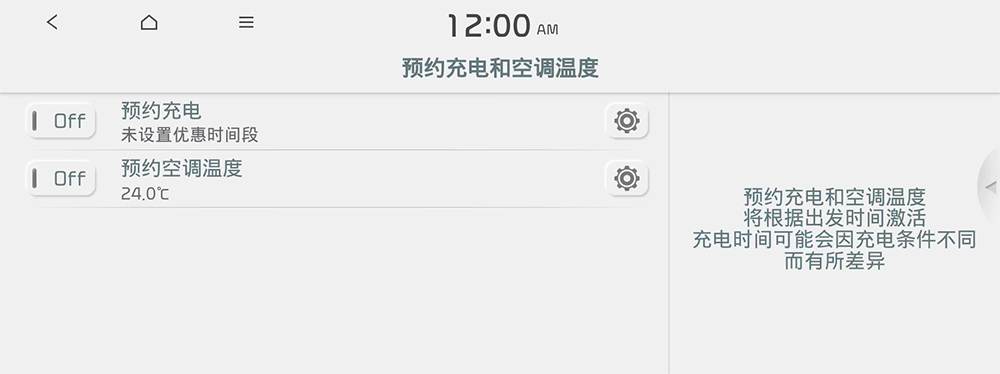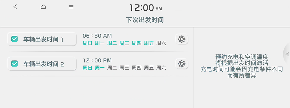 您可以根据指定的出发时间配置自动电池充电或空调控制等各种功能。
