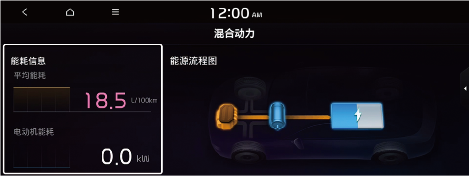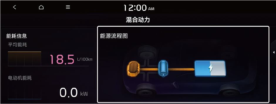 您可以看到车辆的能耗信息和能源流程图。