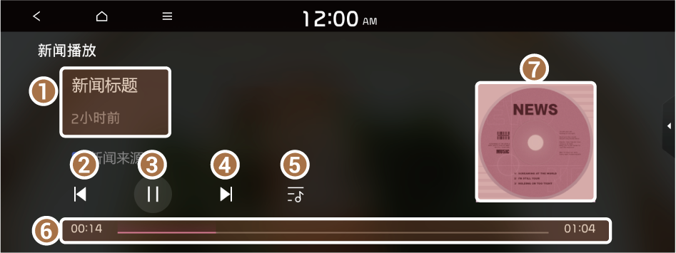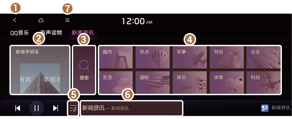 请点击 随身听 中的 新闻资讯或点击操作面板 MEDIA 键 ,在媒体窗口中点击 新闻资讯。